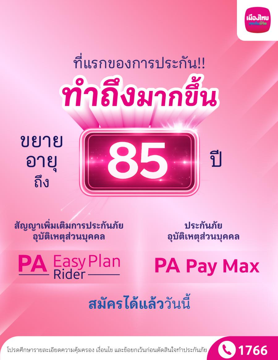 เมืองไทยประกันชีวิต รุกมาตรฐานใหม่ประกันอุบัติเหตุ ขยายอายุรับประกันถึง 85 ปี คุ้มครองสูงสุด 10 ล้านบาท ทั่วโลก 24 ชม. พร้อมสิทธิประโยชน์สุขภาพครบวงจร