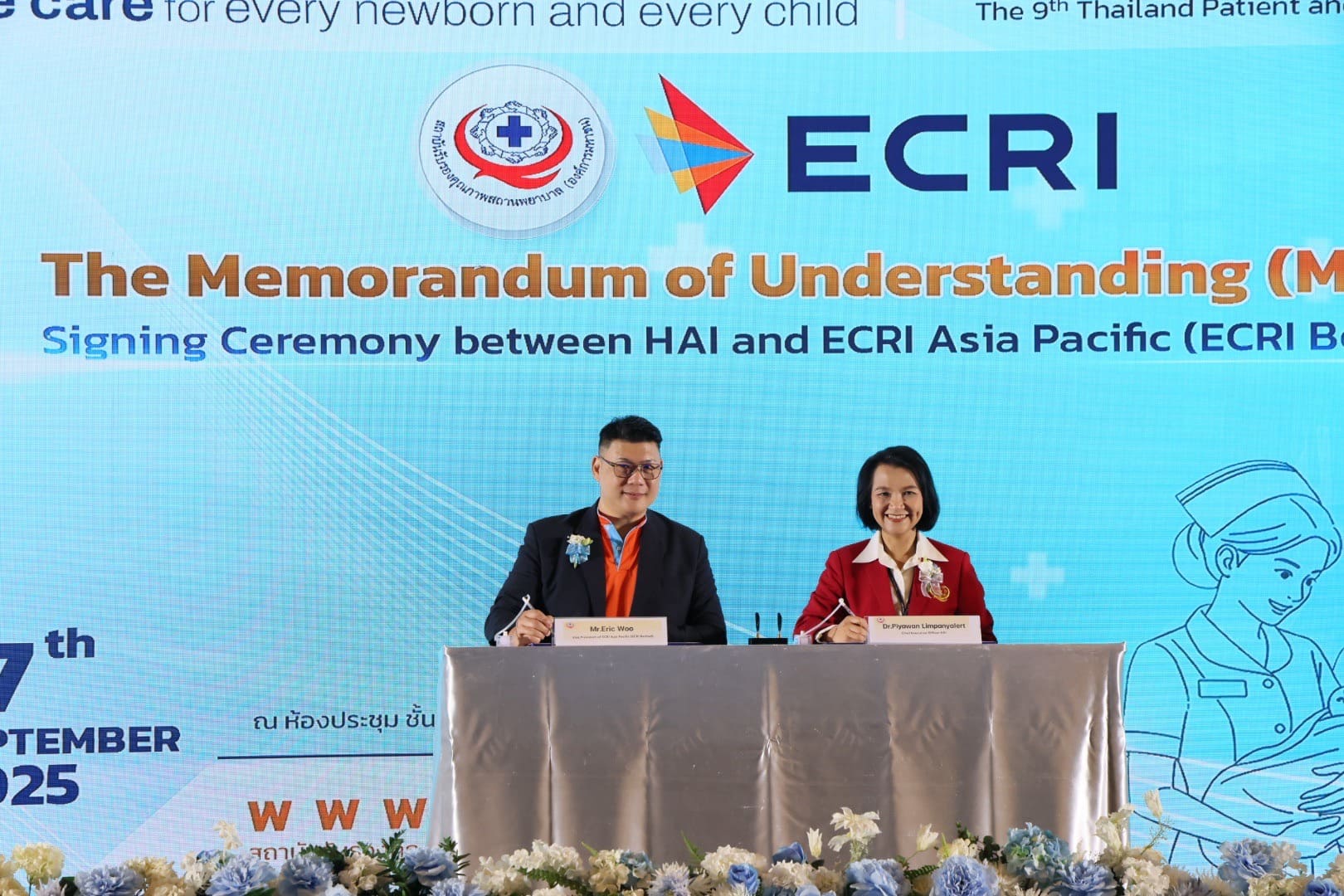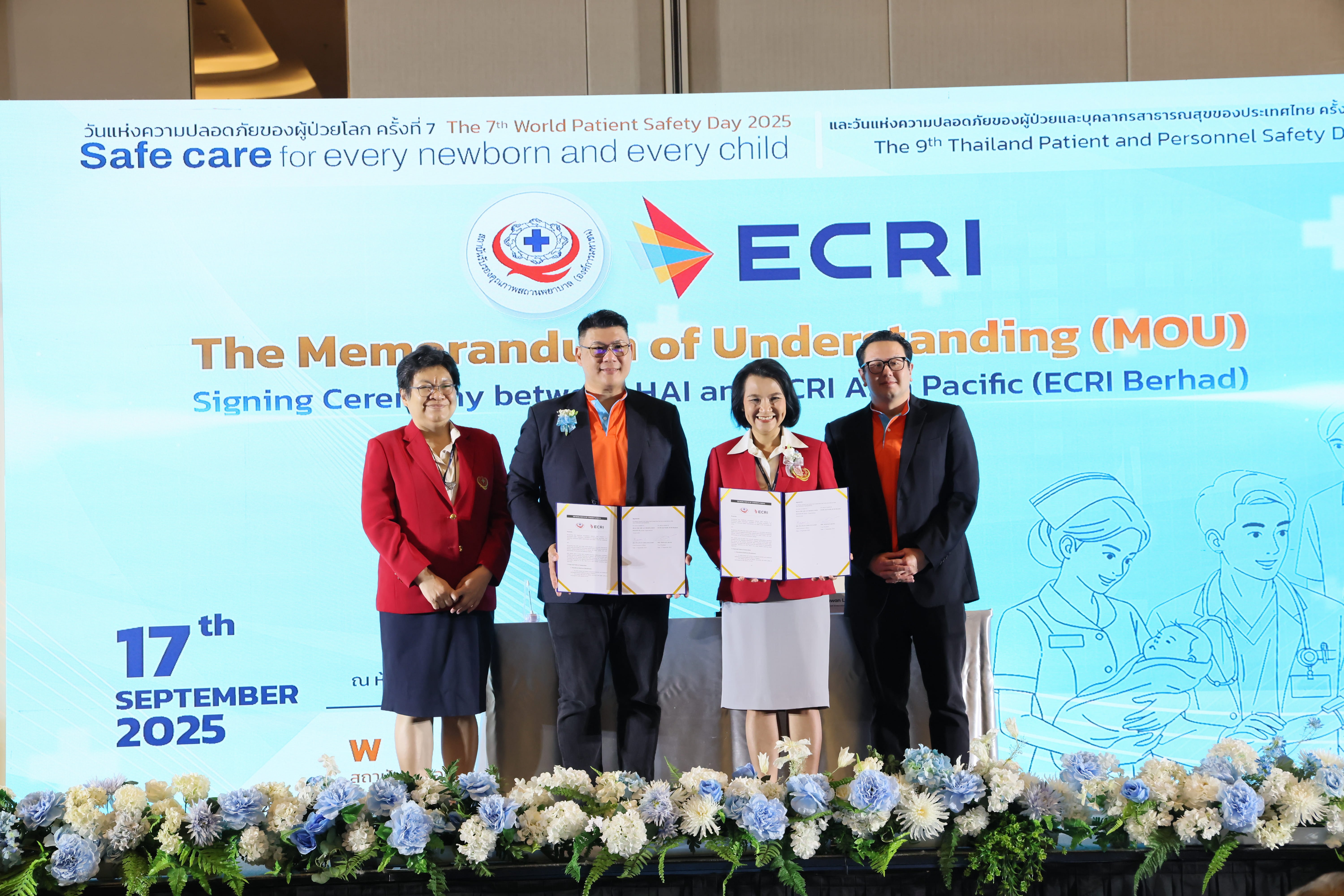 สถาบันรับรองคุณภาพสถานพยาบาล (องค์การมหาชน) หรือ สรพ. จัดพิธีลงนามบันทึกลงนามความร่วมมือ (MOU) ร่วมกับ ECRI Asia Pacific (ECRI Berhad) ซึ่งเป็นองค์กรไม่แสวงหาผลกำไรในระดับนานาชาติที่ดำเนินการวิจัยด้านความปลอดภัยของผู้ป่วยและเทคโนโลยีทางการแพทย์ ในงานวันแห่งความปลอดภัยของผู้ป่วยโลก ครั้งที่ 7 (The 7th World Patient Safety Day) และ วันแห่งความปลอดภัยของผู้ป่วยและบุคลากรสาธารณสุขของประเทศไทย ครั้งที่ 9 (The 9th Thailand Patient and Personnel Safety Day) ประจำปีงบประมาณ 2568 เมื่อวันที่ 17 กันยายน 2568 ณ โรงแรมอัศวิน แกรนด์ คอนเวนชั่น หลักสี่ กรุงเทพฯ โดยมี พญ.ปิยวรรณ ลิ้มปัญญาเลิศ ผู้อำนวยการสรพ. และ MR. WOO KIT SEONG (Mr.Eric Woo) ECRI Asia Pacific (ECRI Berhad) เป็นผู้แทนของทั้ง 2 หน่วยงานในการลงนาม