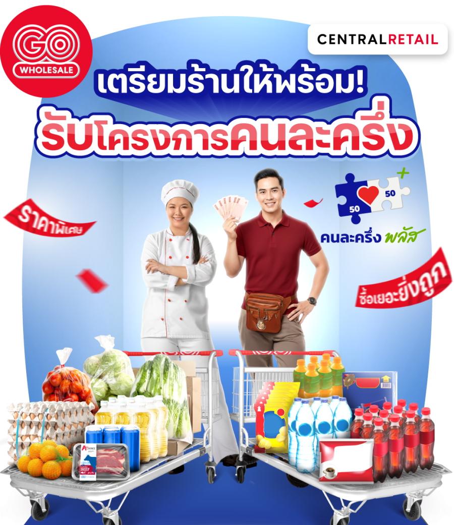โก โฮลเซลล์ (GO WHOLESALE) ศูนย์ค้าส่งวัตถุดิบอาหาร ที่มีความสดใหม่ตลอดเวลาเพื่อผู้ประกอบการ ดำเนินงานภายใต้บริษัท เซ็นทรัล ฟู้ด โฮลเซลล์ จำกัด ในเครือเซ็นทรัล รีเทล ผุดแคมเปญพิเศษขานรับมาตรการกระตุ้นเศรษฐกิจภาครัฐ ยกทัพสินค้าอาหารสด สินค้าอุปโภคบริโภคกว่า 25000 รายการ ช่วยร้านค้าลงทะเบียน “คนละครึ่งพลัส” ลดต้นทุน เพิ่มรายได้ ดันธุรกิจรายเล็กเติบโต ถึงสิ้นปี 2568