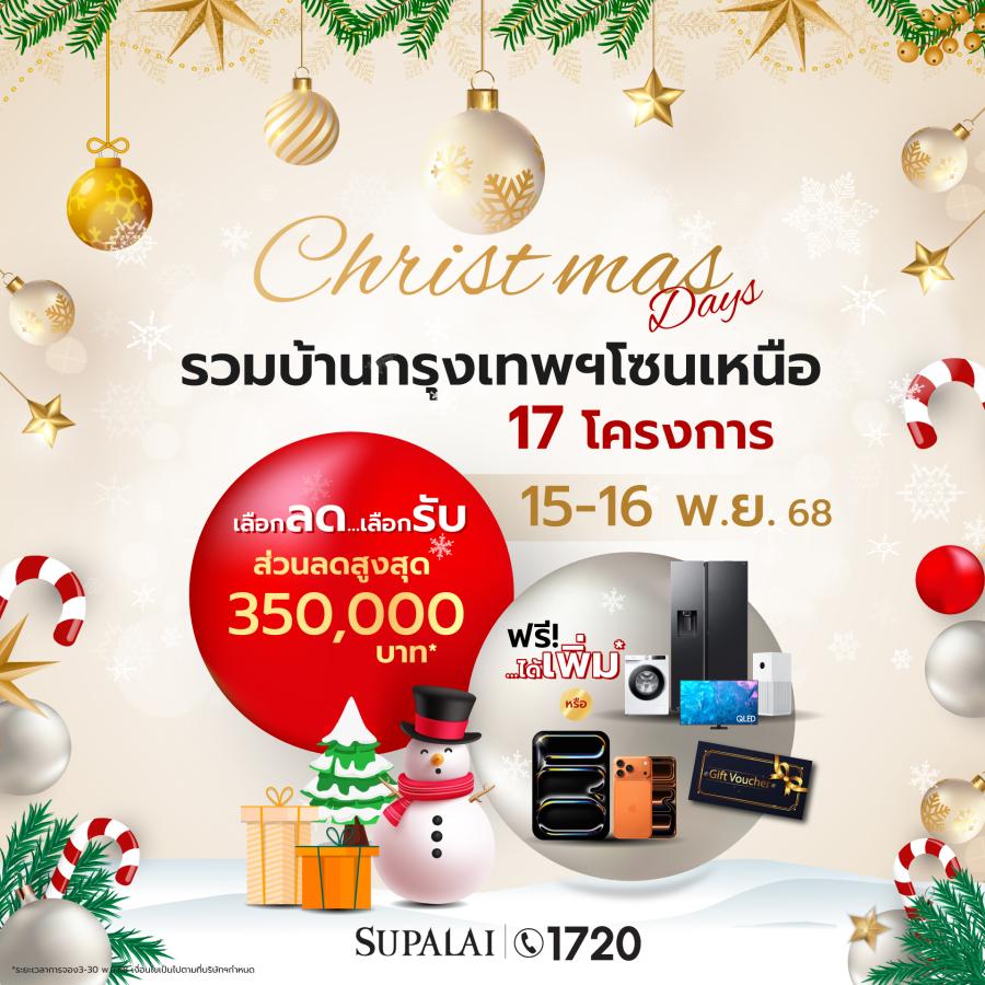 “Supalai Christmas Days” พบมหกรรมพิเศษสุดส่งท้ายปี รวมบ้านโซนกรุงเทพฯ เหนือ 17 โครงการ พร้อมโปรแรง เลือกลด...เลือกรับ ได้เพิ่ม! วันที่ 15–16 พฤศจิกายนนี้เท่านั้น