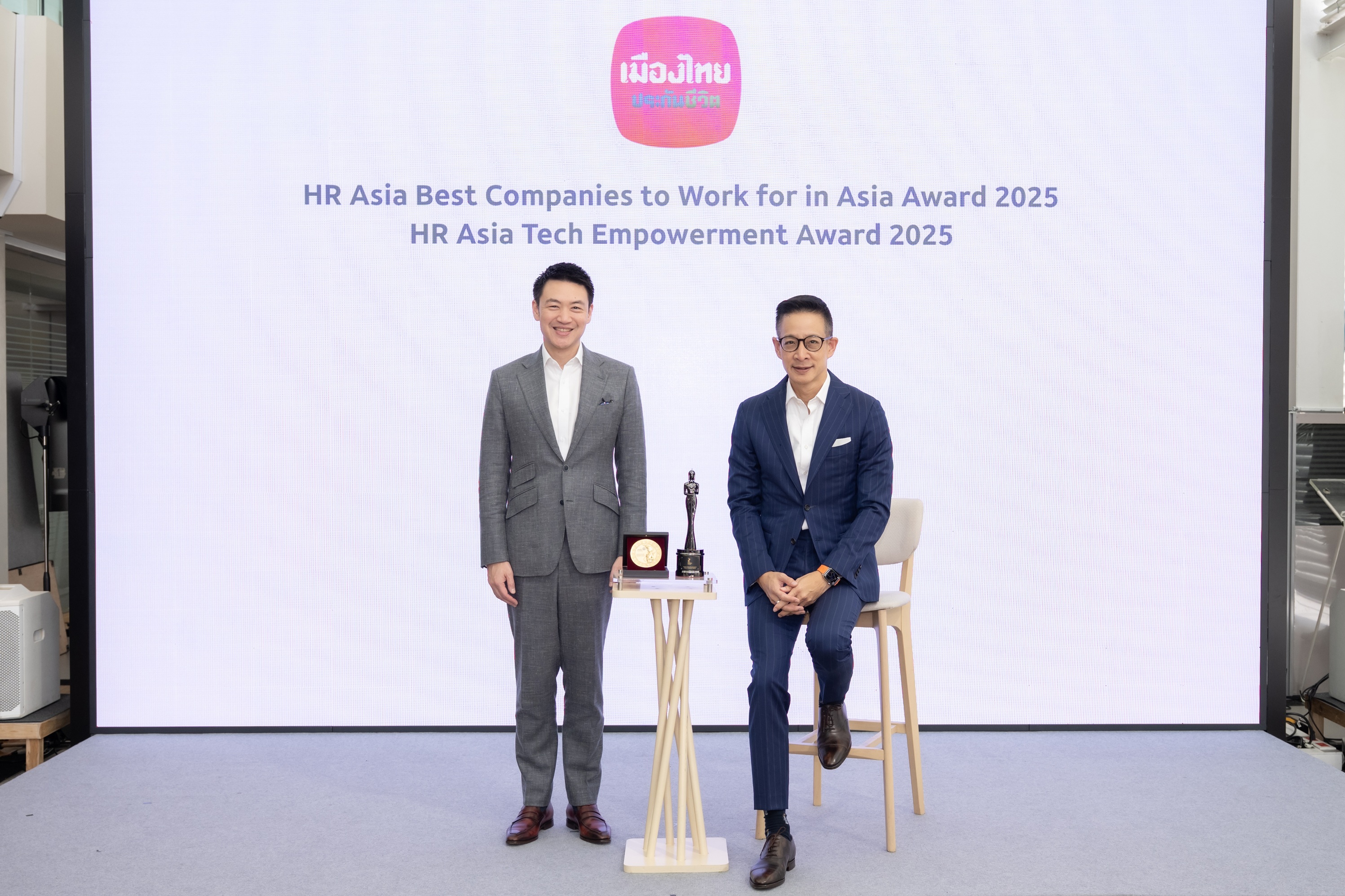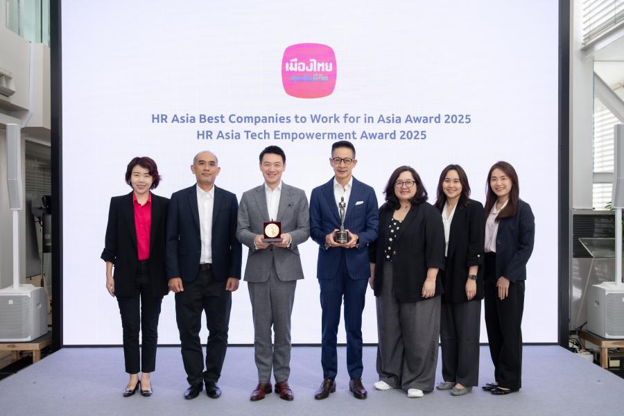 บริษัท เมืองไทยประกันชีวิต จำกัด (มหาชน) คว้า 2 รางวัลใหญ่ระดับสากล ด้านการบริหารทรัพยากรบุคคลและด้านการส่งเสริมการเรียนรู้และการใช้เทคโนโลยีภายในองค์กร ได้แก่ รางวัล ”Best Companies to Work For in Asia 2025” ที่ได้รับต่อเนื่องเป็นปีที่ 4 ตอกย้ำความเป็นองค์กรที่น่าทำงานที่สุดในเอเชีย และโดดเด่นด้านการบริหารทรัพยากรบุคคลอันเป็นเลิศ การสร้างสภาพแวดล้อมการทำงานที่เหมาะสม ยอมรับในคุณค่าของพนักงาน เน้นความสุขของพนักงานเป็นสำคัญ และรางวัล ”Tech Empowerment” ซึ่งยกย่ององค์กรที่ใช้เทคโนโลยีสนับสนุนการพัฒนาองค์กรและยกระดับประสบการณ์การทำงานของพนักงานอย่างมีประสิทธิภาพ จากนิตยสาร HR Asia ซึ่งเป็นสื่อชั้นนำด้านทรัพยากรบุคคลในภูมิภาคเอเชีย โดยทั้งสองรางวัลสะท้อนให้เห็นถึงความมุ่งมั่นอย่างต่อเนื่องของเมืองไทยประกันชีวิตในการให้ความสำคัญกับการพัฒนาบุคลากร การสร้างสภาพแวดล้อมการทำงานที่มีคุณค่า รวมถึงการนำเทคโนโลยีมาประยุกต์ใช้เพื่อยกระดับการทำงานให้มีประสิทธิภาพมากยิ่งขึ้น
