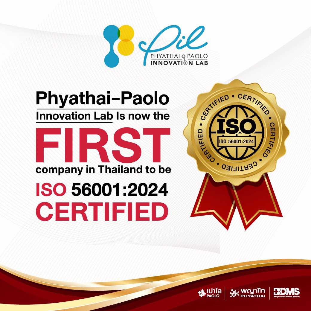 กรุงเทพฯ — เครือโรงพยาบาลพญาไท–เปาโล นำโดย Phyathai–Paolo Innovation Lab (PIL) สร้างประวัติศาสตร์ใหม่ให้กับวงการนวัตกรรมสุขภาพไทย ด้วยการได้รับการรับรองมาตรฐานสากล ISO 56001:2024 ด้านระบบการจัดการนวัตกรรม (Innovation Management System) เป็นองค์กรแรกของประเทศไทย