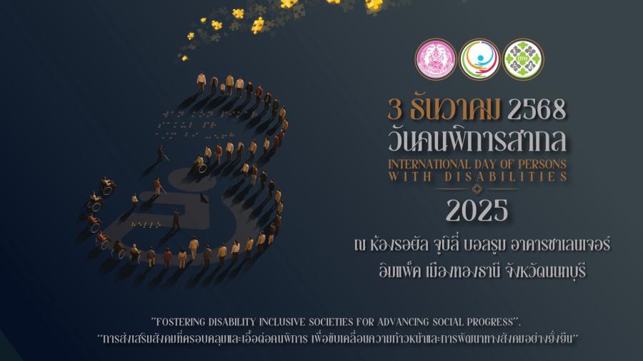 ในโอกาสวันคนพิการสากล ประจำปี 2568 นี้ จึงขอเชิญชวนทุกท่านร่วมงานวันคนพิการสากล ประจำปี 2568 ในวันที่ 3 ธันวาคม 2568 ซึ่งเป็นงานใหญ่ที่ให้ความสำคัญกับการส่งเสริมความเข้าใจและกระตุ้นให้สังคมตระหนักถึงความสำคัญของการเคารพศักดิ์ศรี ความเสมอภาค และคุณภาพชีวิตที่ดีของคนพิการ และเน้นย้ำถึงคุณค่าและศักยภาพของคนพิการในการมีส่วนร่วมในทุกมิติของสังคม พร้อมให้โอกาสกลุ่มคนพิการในการแสดงศักยภาพ โดยมุ่งเน้นความเท่าเทียมกัน และการ Upskill และ Reskill ด้านทักษะส่งเสริมอาชีพของคนพิการ อีกทั้งภาคีเครือข่ายองค์กรด้านคนพิการมีส่วนร่วมผ่านการจัดงานวันคนพิการสากล ประจำปี 2568”