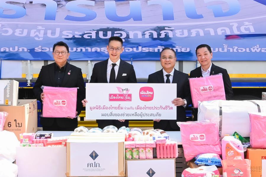 บริษัท เมืองไทยประกันชีวิต จำกัด (มหาชน) และมูลนิธิเมืองไทยยิ้ม ร่วมสนับสนุนการช่วยเหลือผู้ประสบอุทกภัยในพื้นที่ภาคใต้ ผ่านโครงการ “ธารน้ำใจช่วยผู้ประสบภัยภาคใต้” ของสำนักงานคณะกรรมการกำกับและส่งเสริมการประกอบธุรกิจประกันภัย (คปภ.) โดยได้ส่งมอบผ้าห่มเพื่อช่วยบรรเทาความเดือดร้อนและสร้างขวัญกำลังใจให้แก่ประชาชนที่ได้รับผลกระทบจากสถานการณ์น้ำท่วม ในหลายจังหวัดภาคใต้