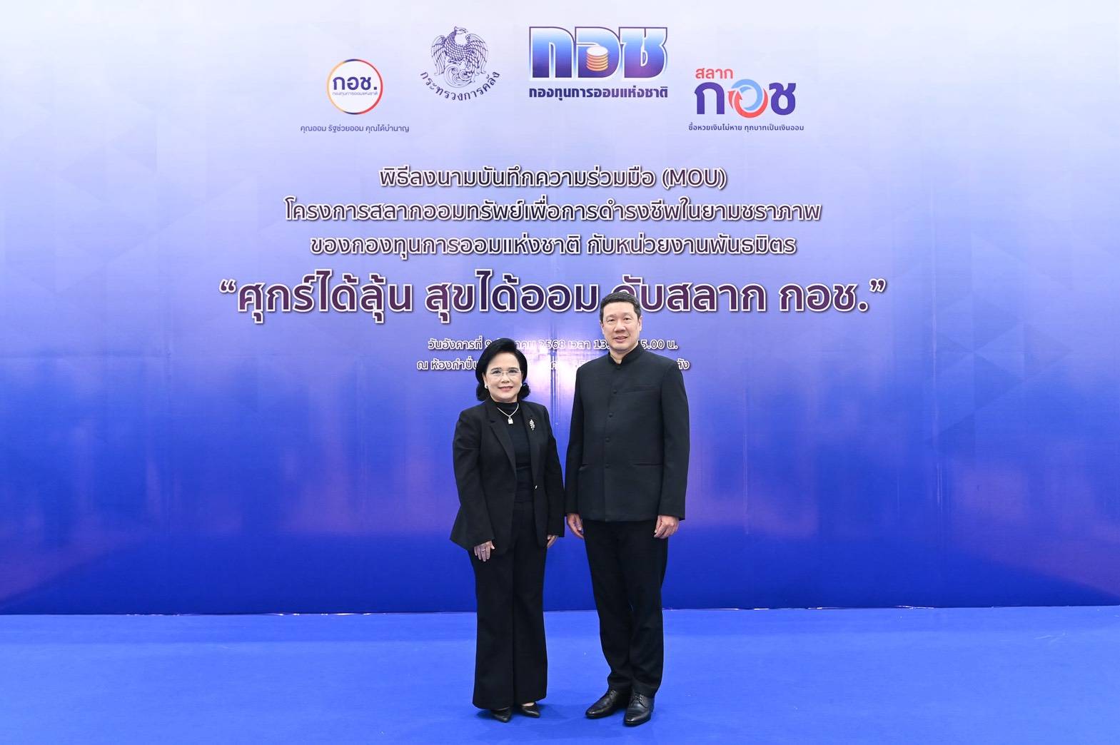 วันที่ 9 ธันวาคม 2568 กองทุนการออมแห่งชาติ (กอช.) จัดงานแถลงข่าวบันทึก ความร่วมมือ (MOU)โครงการสลากออมทรัพย์เพื่อการดำรงชีพในยามชราภาพของกองทุนการออมแห่งชาติ กับหน่วยงานพันธมิตร “ศุกร์ได้ลุ้น สุขได้ออม กับสลาก กอช.” เพื่อยกระดับ การออม ของคนไทยเข้าสู่การออมผ่านดิจิทัล ที่สะดวก รวดเร็ว ครอบคลุมทุกช่องทาง ทุกพื้นที่ พร้อมลุ้นรางวัล ใหญ่ 1 ล้านบาททุกสัปดาห์ ณ ห้องกำปั่นทอง ชั้น 21 อาคาร 150 ปี กระทรวงการคลัง โดยภายในงานยังได้ เปิดตัวแอปพลิเคชัน กอช. รูปแบบใหม่ที่จะสามารถ ทำธุรกรรม เปิดบัญชี ติดตามเงินออม ข้อมูลข่าวสารของ สมาชิก กอช. รวมถึงการจำหน่ายสลาก กอช. ในอนาคตด้วย