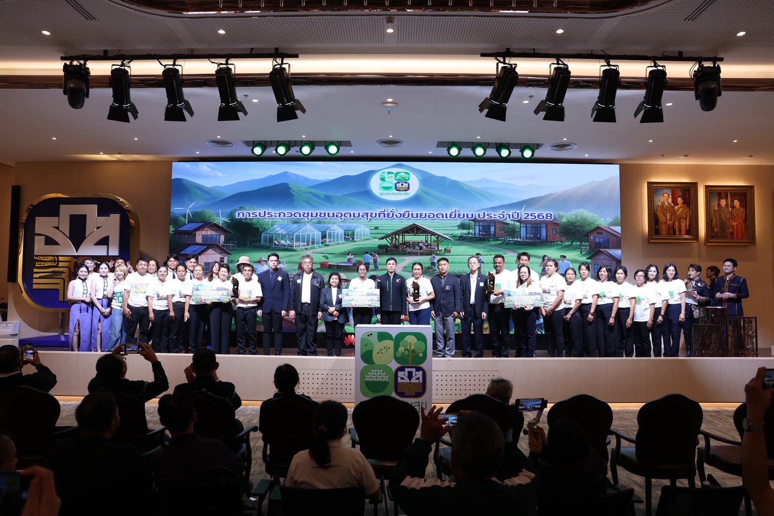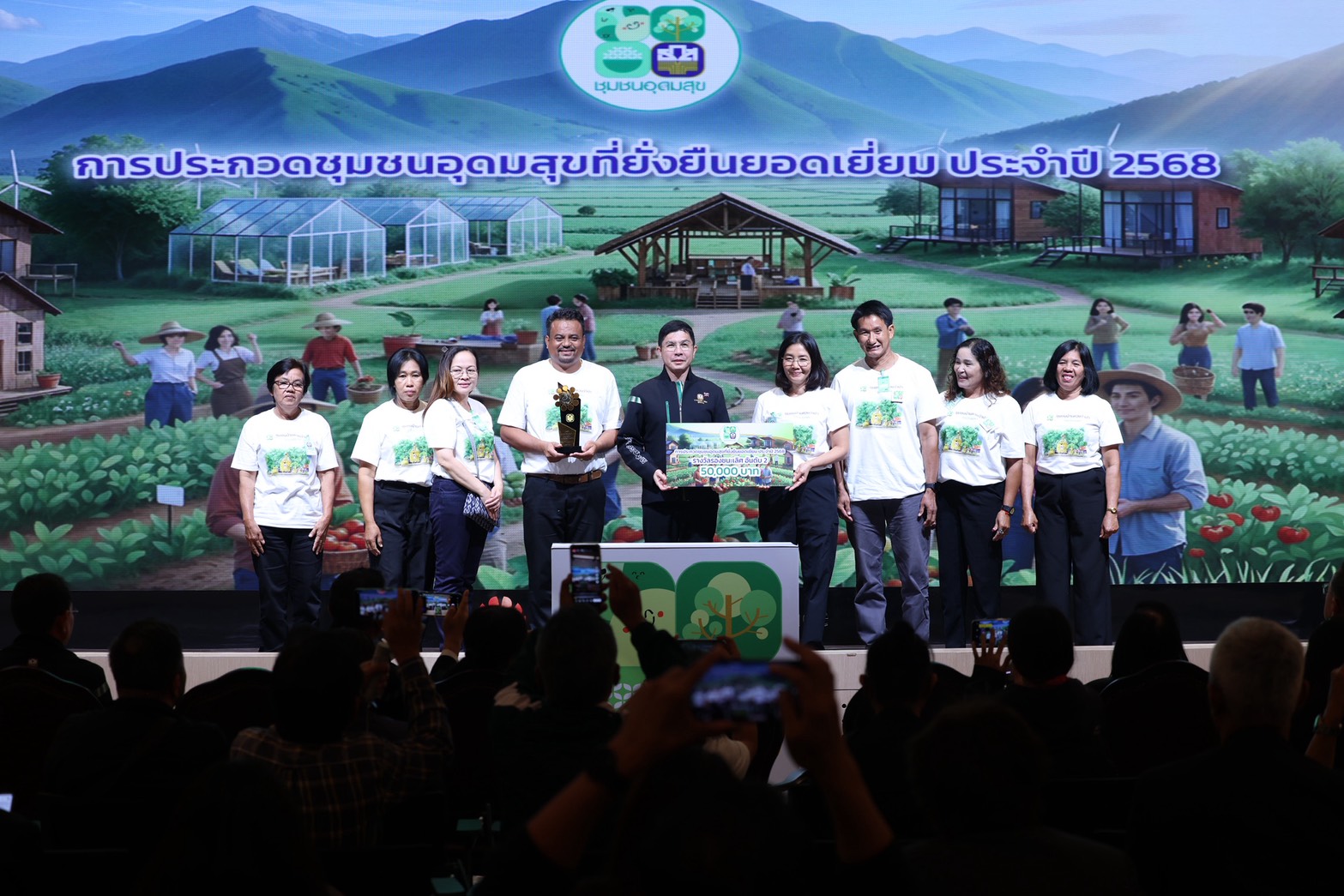 นายฉัตรชัย ศิริไล ผู้จัดการธนาคารเพื่อการเกษตรและสหกรณ์การเกษตร (ธ.ก.ส.) เปิดเผยว่า ธ.ก.ส. ได้จัดการประกวด “ชุมชนอุดมสุขที่ยั่งยืน ยอดเยี่ยมระดับประเทศ ปี 2568” ภายใต้สโลแกน “กินอิ่ม นอนอุ่น หุ่นดี ทุนมี หนี้ลด หมดทุกข์” โดยจัดขึ้นเป็นปีที่ 5 ติดต่อกัน โดย ธ.ก.ส. ได้คัดเลือกชุมชนอุดมสุขที่ได้รับรางวัลชนะเลิศจากการจัดประกวดระดับภูมิภาค 9 ชุมชน จาก 9 ฝ่ายกิจการสาขาภาคของ ธ.ก.ส. ทั่วประเทศ มาเฟ้นหาชุมชนอุดมสุขที่ยั่งยืนยอดเยี่ยมระดับประเทศ เพื่อเป็นต้นแบบชุมชนในการพัฒนาอย่างยั่งยืนและสร้างแรงบันดาลใจให้กับชุมชนที่กำลังอยู่ในระหว่างการพัฒนาที่จะปรับเปลี่ยนการดำเนินงานอันนำไปสู่การพัฒนาเศรษฐกิจฐานรากอย่างยั่งยืนต่อไป โดยสำหรับชุมชนที่คว้ารางวัลชนะเลิศ 3 อันดับแรก จะได้รับเงินสนับสนุน เพื่อนำไปพัฒนาชุมชนและผลิตภัณฑ์มูลค่ารวม 220000 บาท แบ่งเป็น รางวัลชนะเลิศรับเงินสนับสนุน 100000 บาท รางวัลรองชนะเลิศ อันดับ 1 เงินสนับสนุน 70000 บาท และรางวัลรองชนะเลิศ อันดับ 2 รับเงินสนับสนุน มูลค่า 50000 บาท ซึ่งการตัดสินรางวัล ธ.ก.ส. จะใช้เกณฑ์ในการพิจารณาหลายมิติ ทั้งทางด้านเศรษฐกิจ สังคม วัฒนธรรมและประเพณี สิ่งแวดล้อม การท่องเที่ยวเชิงนิเวศ ผลิตภัณฑ์ และการตลาด เพื่อให้ได้ชุมชนต้นแบบที่สามารถดำเนินกิจกรรมและจัดทำแผนธุรกิจตามแนวทาง BCG Model มีการส่งเสริมการใช้เทคโนโลยีการยกระดับคุณภาพผลิตภัณฑ์ให้ได้มาตรฐานการพัฒนาด้านการตลาด และการพัฒนาเศรษฐกิจแบบองค์รวม เพื่อมุ่งไปสู่การเป็นแกนกลางทางการเกษตรตามเป้าหมายของ ธ.ก.ส. ซึ่งการประกวดครั้งนี้ ธ.ก.ส. ได้รับเกียรติจากผู้ทรงคุณวุฒิมาร่วมเป็นกรรมการตัดสิน นำโดยนางสาวลดาวัลย์ คำภา ผู้ทรงคุณวุฒิ คณะอนุกรรมการพัฒนาเศรษฐกิจฐานรากและความรับผิดชอบต่อสังคมและสิ่งแวดล้อมเป็นประธานกรรมการตัดสิน นายเอ็นนู ซื่อสุวรรณ กรรมการสภาพัฒนาการเศรษฐกิจและสังคมแห่งชาติ พร้อมด้วยประธานสภาอุตสาหกรรมการท่องเที่ยวแห่งประเทศไทย ผู้ว่าการสถาบันวิจัยวิทยาศาสตร์และเทคโนโลยีแห่งประเทศไทย (วว.) และอธิการบดีมหาวิทยาลัยหอการค้าไทย โดยผลการตัดสินปรากฏว่า ชุมชนบ้านโนนกระสัง จากจังหวัดนครราชสีมา คว้ารางวัลชนะเลิศชุมชนอุดมสุขที่ยั่งยืนยอดเยี่ยม ระดับประเทศ รับเงินรางวัลสนับสนุนสำหรับพัฒนาผลิตภัณฑ์ มูลค่า 100000 บาท ส่วนรางวัลรองชนะเลิศ อันดับ 1 ได้แก่ ชุมชนบ้านกกปลาซิว จากจังหวัดสกลนคร มูลค่า 70000 บาท และรางวัลรองชนะเลิศ อันดับ 2 ได้แก่ ชุมชนบ้านควนจำปา จากจังหวัดชุมพร รับเงินรางวัล 50000 บาท