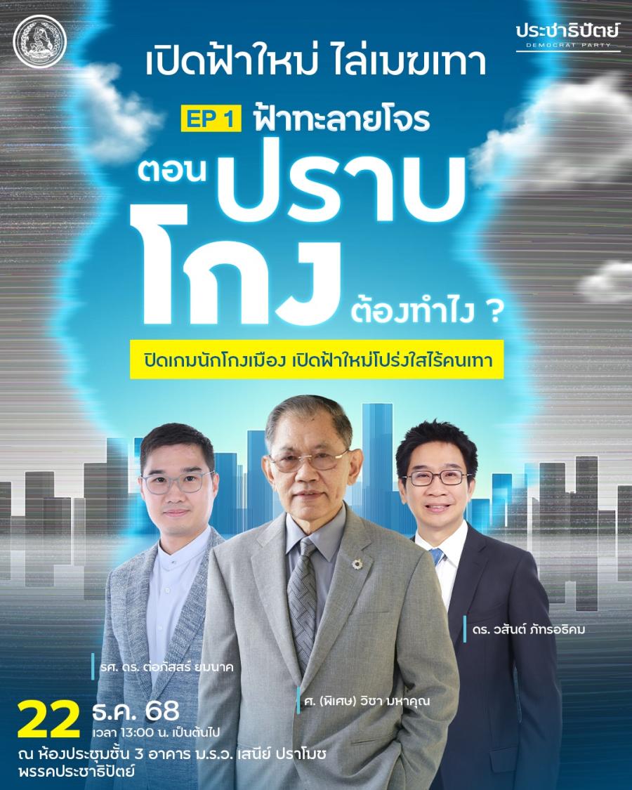 ประชาธิปัตย์เปิดเวที “เปิดฟ้าใหม่ ไล่เมฆเทา EP.1” ชวนถอดบทเรียนคอร์รัปชัน ถามตรง “ปราบโกง ต้องทำไง ?”