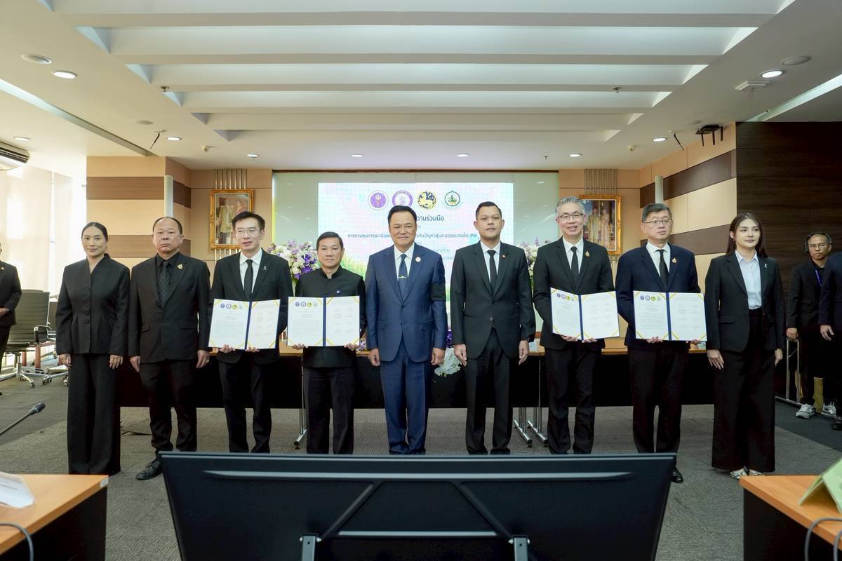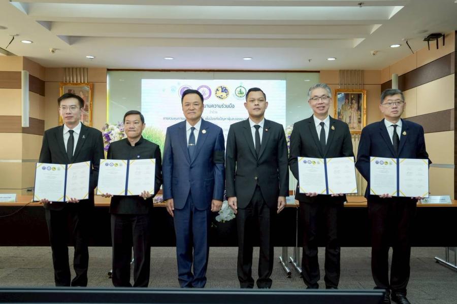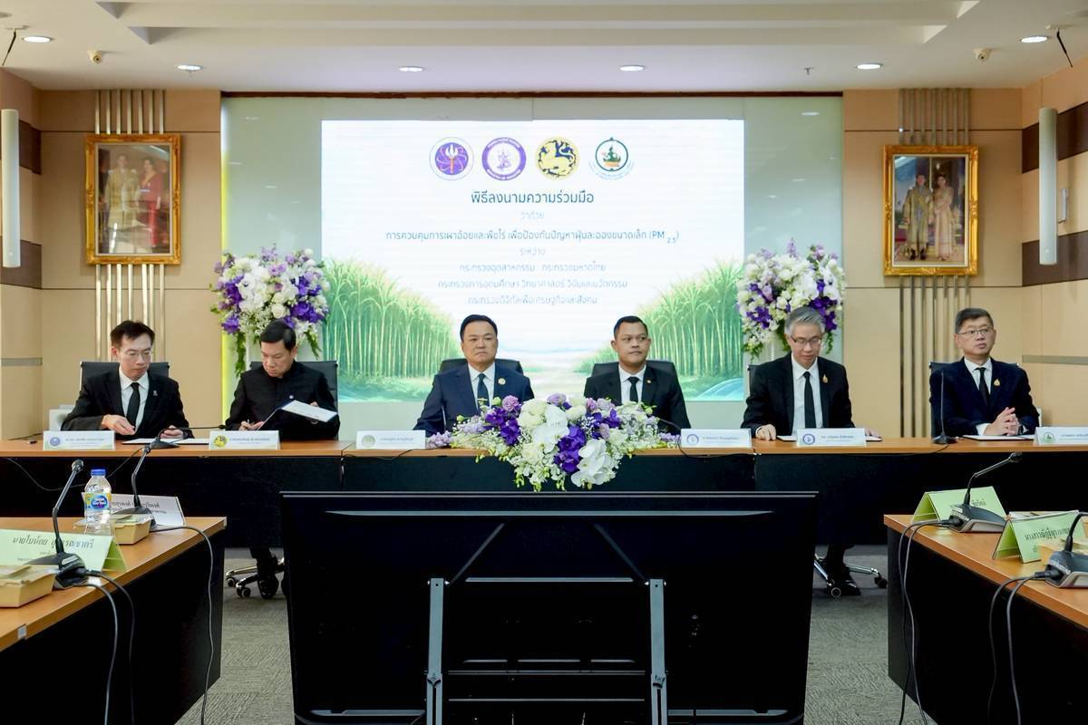 การลงนามความร่วมมือ ว่าด้วยการควบคุมการเผาอ้อยและพืชไร่ เพื่อป้องกันปัญหาฝุ่นละอองขนาดเล็ก (PM 2.5) ระหว่างกระทรวงอุตสาหกรรม ร่วมกับ กระทรวงมหาดไทย กระทรวงการอุดมศึกษา วิทยาศาสตร์ วิจัยและนวัตกรรม และกระทรวงดิจิทัลเพื่อเศรษฐกิจและสังคม
