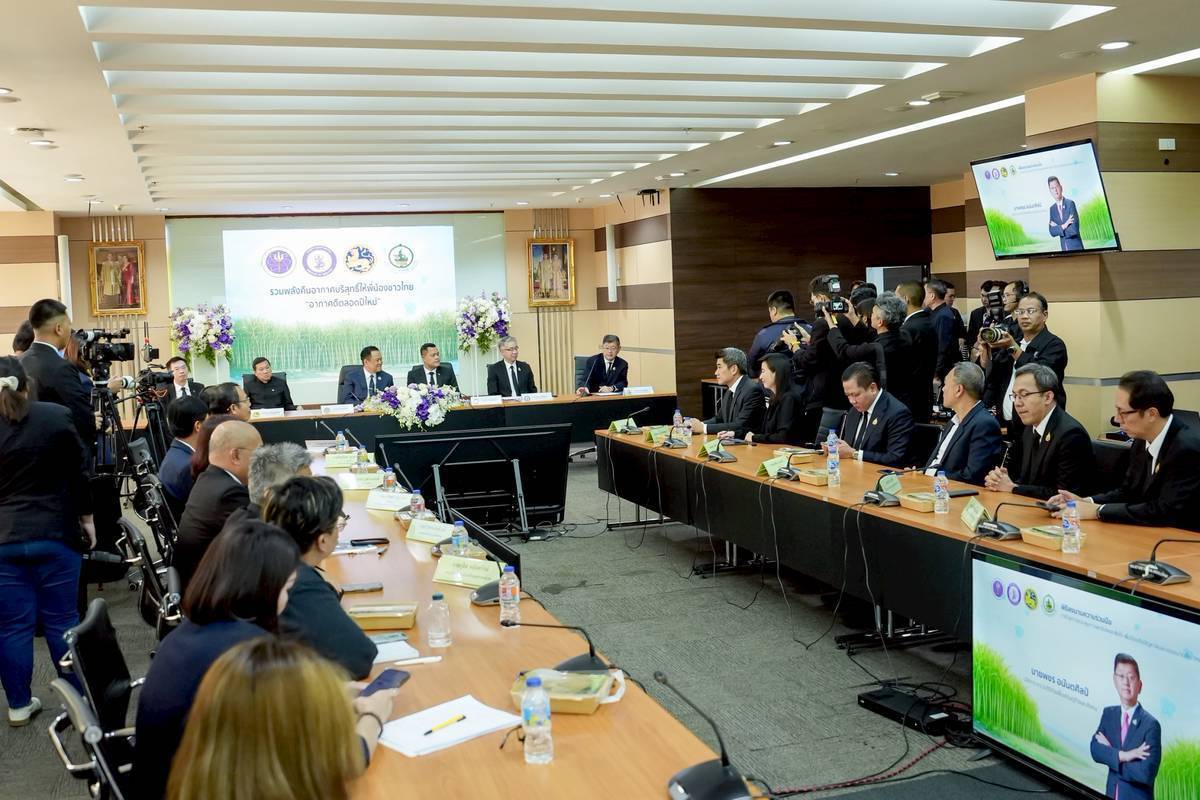• ยุคที่ 5.0 : เป็นการต่อยอดความสำเร็จในฤดูการผลิตปี 2568/2569 นี้ ซึ่งเป็นก้าวต่อไปของอุตสาหกรรมอ้อยและน้ำตาลทรายแบบที่เป็นมิตรกับสิ่งแวดล้อม กระทรวงอุตสาหกรรมได้มีแนวคิดผลักดันมาตรการจ่ายเงินช่วยเหลือตามประสิทธิภาพ และการใช้เทคโนโลยีภาพถ่ายดาวเทียม ตลอดจนการประยุกต์ใช้ข้อมูลด้านอุตุนิยมวิทยา จากแรงกดอากาศและทิศทางลม เพื่อควบคุมการเผาอ้อยได้อย่างมีประสิทธิภาพบนพื้นฐานของการควบคุมการเผาในเชิงพื้นที่ และการประยุกต์ใช้ข้อมูลด้านวิทยาศาสตร์และเทคโนโลยี และเทคโนโลยีดิจิทัล ดังนั้น กระทรวงอุตสาหกรรม จึงได้มอบหมายให้สำนักงานคณะกรรมอ้อยและน้ำตาลทราย (สอน.) เดินหน้าขับเคลื่อนมาตรการเพิ่มอ้อยตัดสดลดการเผา สะท้อนให้เห็นถึงความร่วมมือจากทั้งเกษตรกร โรงงานน้ำตาล และหน่วยงานทุกภาคส่วน โดยได้ยกระดับความร่วมมือกับหน่วยงานภาครัฐหลักอย่างต่อเนื่อง โดยเฉพาะอย่างยิ่ง กระทรวงอุตสาหกรรมจึงร่วมกับกระทรวงมหาดไทย (มท.) กระทรวงการอุดมศึกษา วิทยาศาสตร์ วิจัยและนวัตกรรม (อว.) และกระทรวงดิจิทัลเพื่อเศรษฐกิจและสังคม (ดีอี) ซึ่งเป็นที่มาของลงนามความร่วมมือว่าด้วยการควบคุมการเผาอ้อยและพืชไร่ เพื่อป้องกันปัญหาฝุ่นละอองขนาดเล็ก (PM 2.5) ในวันนี้ โดยมีเป้าหมายเพื่อบูรณาการความร่วมมือระหว่างหน่วยงานภาครัฐในการแก้ไขปัญหาการเผาอ้อยในช่วงฤดูการผลิตปี 2568/2569 ถึงฤดูการผลิตปี 2569/2570 โดยให้ความสำคัญกับการลดการเผาอ้อยทั้งก่อนและหลังการเก็บเกี่ยว ควบคู่กับการลดผลกระทบจากฝุ่น PM 2.5 ผ่านการแลกเปลี่ยนองค์ความรู้ ความเชี่ยวชาญ เทคโนโลยี และเครือข่ายการปฏิบัติงานของแต่ละหน่วยงาน เพื่อให้เกิดผลลัพธ์และต่อยอดในระยะยาว ทั้งด้านเศรษฐกิจ สังคม และสิ่งแวดล้อม