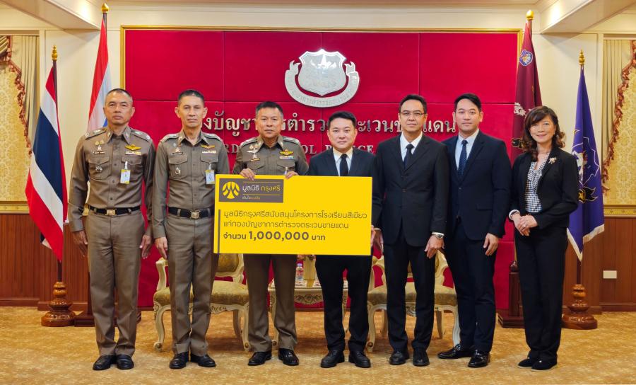 กรุงเทพฯ (12 กุมภาพันธ์ 2569) – นายพูนสิทธิ์ ว่องธวัชชัย (กลาง) ผู้ช่วยเลขานุการมูลนิธิกรุงศรี ในฐานะผู้แทนมูลนิธิกรุงศรี มอบเงินสนับสนุนจำนวน 1 ล้านบาท แก่กองบัญชาการตำรวจตระเวนชายแดน เพื่อใช้ในการก่อสร้าง “ศูนย์การเรียนตำรวจตระเวนชายแดนปูนอินทรี–มูลนิธิกรุงศรี” (ระยะที่ 1) อำเภอสบเมย จังหวัดแม่ฮ่องสอน ภายใต้โครงการ “โรงเรียนสีเขียว” โดยมีพลตำรวจตรี กัญชล อินทราราม (ที่ 3 จากซ้าย) รองผู้บัญชาการตำรวจตระเวนชายแดน ให้เกียรติเป็นผู้รับมอบ ณ กองบัญชาการตำรวจตระเวนชายแดน