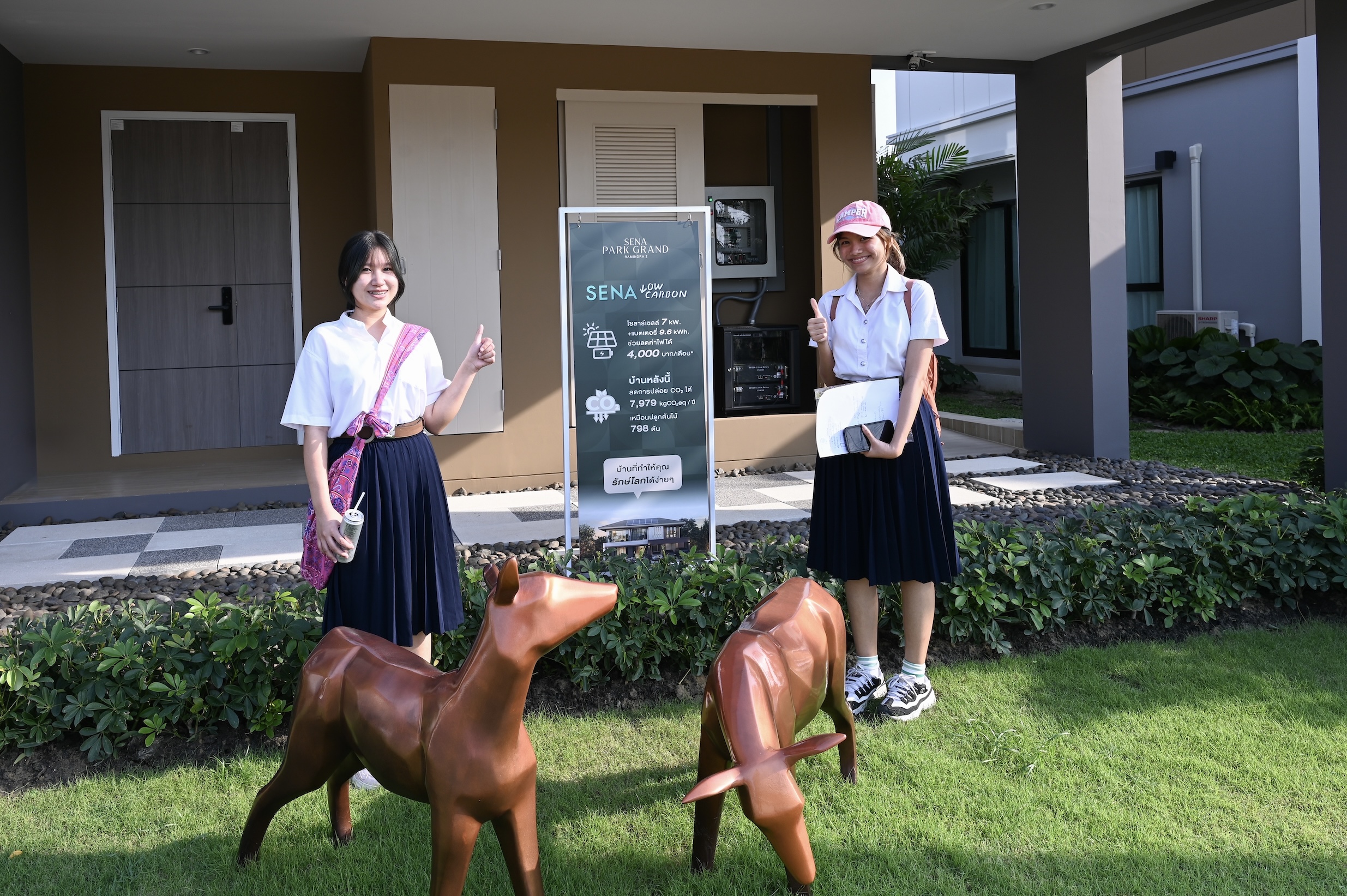 โครงการ “SENA PARK GRAND RAMINDRA 2” เป็นบ้านเดี่ยวระดับพรีเมียมภายใต้แนวคิด ‘Live Green Stay Grand’ ตั้งอยู่ใน Green District ที่ใหญ่ที่สุดบนถนนรามอินทรา ภายใน SENA Park Avenue โดดเด่นด้วย Private Park กว่า 10 ไร่ ผสานพื้นที่สีเขียวขนาดใหญ่เข้ากับ SENA Park Residences และสิ่งอำนวยความสะดวกครบครัน เพื่อยกระดับคุณภาพชีวิตของผู้อยู่อาศัย โครงการนี้ตอกย้ำวิสัยทัศน์ของเสนาในฐานะผู้พัฒนาอสังหาริมทรัพย์ไทยรายแรกที่ติดตั้งแผงโซลาร์เซลล์ให้กับบ้านทุกหลังในทุกโครงการ และต่อยอดสู่แนวคิด “บ้านพลังงานเป็นศูนย์” (SENA Zero Energy House) พร้อมยกระดับสู่โครงการบ้านเดี่ยวระดับพรีเมียมรายแรกที่ติดตั้ง Solar Cell ขนาด 7 kW ควบคู่แบตเตอรี่ลิเทียมไอออนคุณภาพสูงครบทุกหลัง ช่วยประหยัดพลังงานได้สูงสุดถึง 85% รองรับการใช้พลังงานสะอาดได้ตลอด 24 ชั่วโมง* และเตรียมความพร้อมสำหรับ EV Charger ในทุกหลัง ทั้งหมดนี้สะท้อนแนวทางการออกแบบที่ผสานเทคโนโลยีพลังงานสะอาดเข้ากับการอยู่อาศัยอย่างลงตัว ทำให้การใช้ชีวิตแบบ Low Carbon เป็นเรื่องง่ายในชีวิตประจำวัน ตอบโจทย์ครอบครัวรุ่นใหม่ที่ใส่ใจทั้งความคุ้มค่าและสิ่งแวดล้อมในระยะยาว
