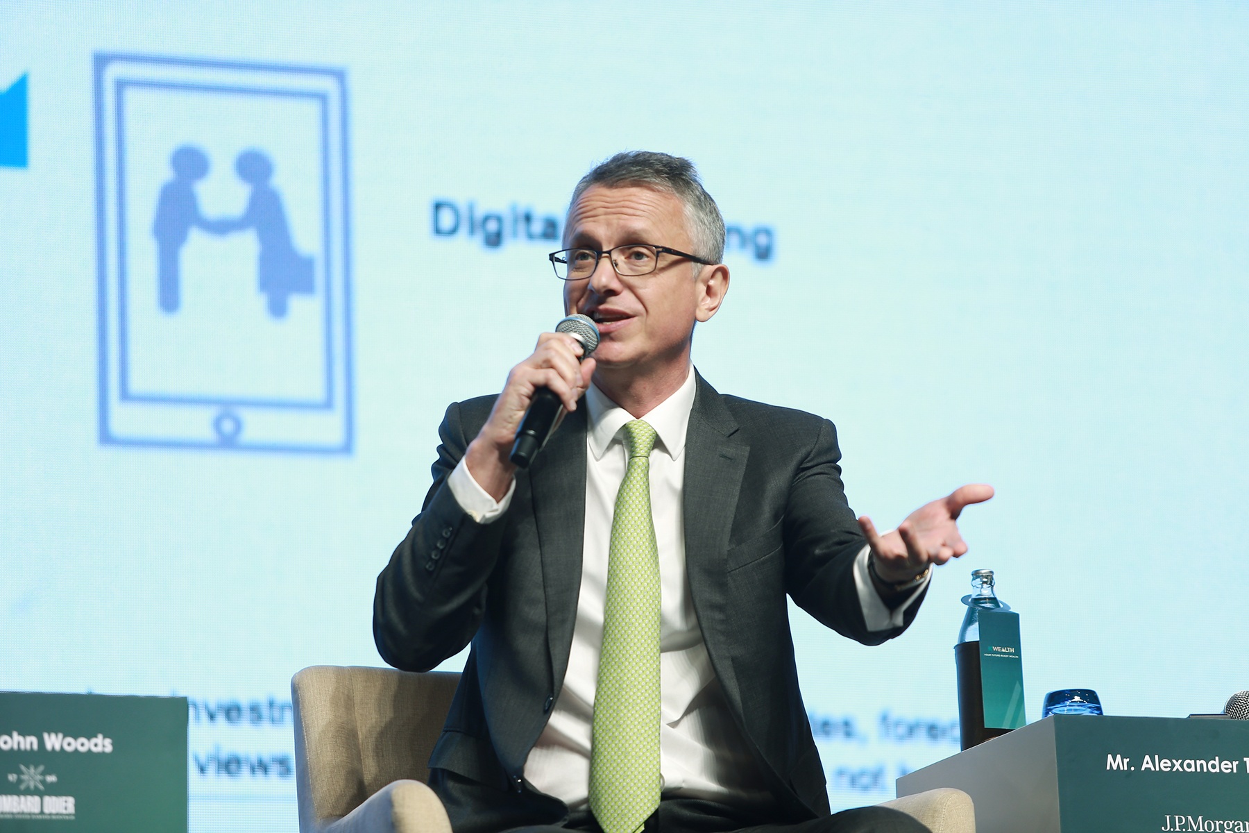 Mr. Alexander Treves Managing Director Head of Investment Specialist- Asia J.P. Morgan Asset Management ฉายภาพชัดถึงการเปลี่ยนผ่านสู่ยุค AI อย่างเต็มรูปแบบที่จะเข้ามาปฏิวัติผลิตผลของเศรษฐกิจโลกในทุกมิติ ท่ามกลางสมรภูมิการแข่งขันระหว่างมหาอำนาจอย่างสหรัฐฯ และจีน ที่ต่างเร่งชิงความได้เปรียบเพื่อลดการพึ่งพาประเทศอื่น โดยคาดการณ์ว่าจะมีเม็ดเงินลงทุนสะสมในธุรกิจที่เกี่ยวข้องกับ AI พุ่งสูงถึง 3 ล้านล้านดอลลาร์สหรัฐในช่วงปี 2024–2029