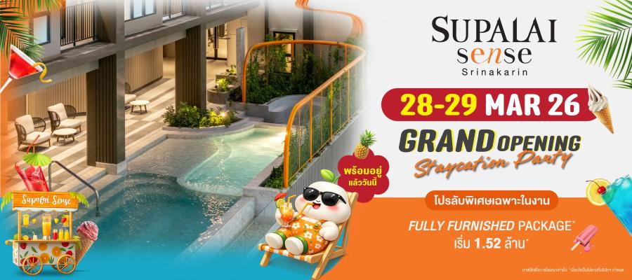เชิญชมตึกจริง ห้องจริง และสัมผัสบรรยากาศการอยู่อาศัยที่สงบและเป็นส่วนตัว ได้ในวันที่ 28-29 มีนาคม 2569 นี้ ณ สำนักงานขายโครงการ “ศุภาลัย เซนส์ ศรีนครินทร์” ครั้งแรกของโครงการกับข้อเสนอพิเศษ ฟรี! “เฟอร์นิเจอร์ครบชุด” สำหรับผู้จองภายในงานเท่านั้น พร้อมหิ้วกระเป๋าเข้าอยู่ ฟีล Staycation ได้ทันที ตอบโจทย์ชีวิตคนเมือง ในราคาที่เอื้อมถึง เริ่มต้นเพียง 1.52 ล้านบาท โอกาสดี ๆ แบบนี้ต้องรีบจับจองก่อนใคร! สอบถามข้อมูลเพิ่มเติม โทร. 1720 หรือ Facebook: Supalai (เงื่อนไขเป็นไปตามที่บริษัทฯ กำหนด)
