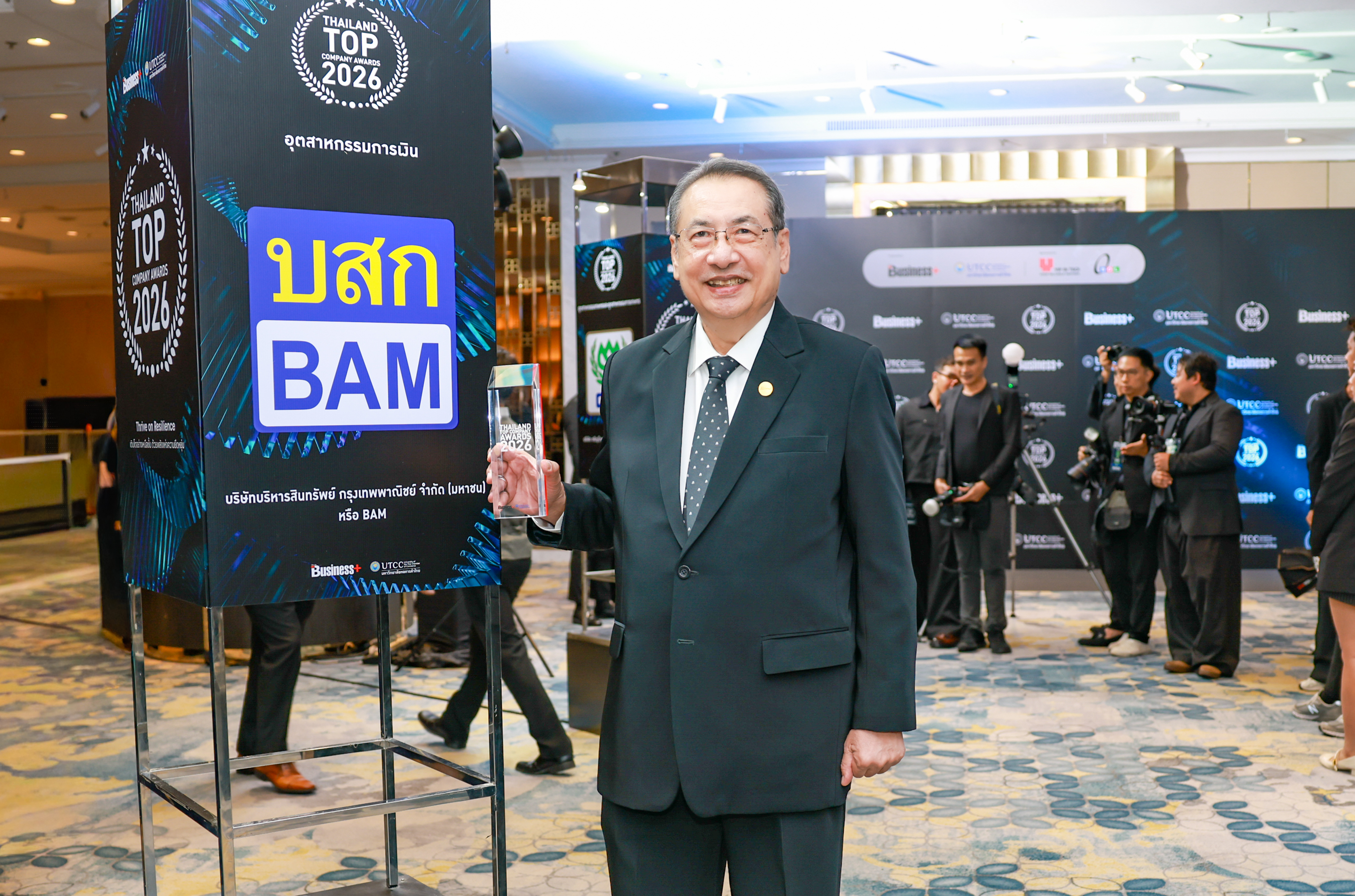 BAM สร้างความภาคภูมใจอีกครั้ง ด้วยการคว้ารางวัล Thailand Top Company Awards 2026 ประเภทรางวัลชนะเลิศ อุตสาหกรรมการเงิน สะท้อนศักยภาพและความแข็งแกร่งขององค์กรในฐานะผู้นำธุรกิจบริหารสินทรัพย์ของประเทศ